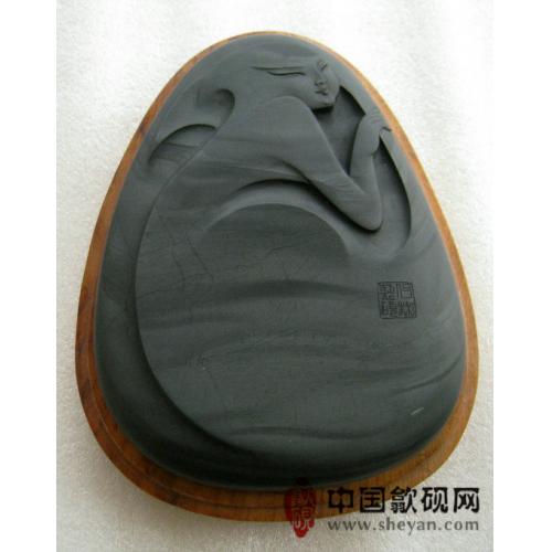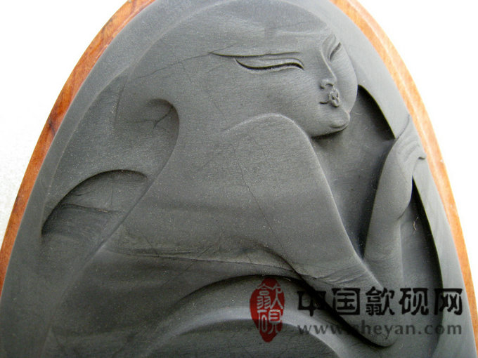 【描述】正宗老坑出品,方派大师作品,纯美之作。砚上眉纹,有如弯月,又如柳叶,清新脱俗,纹理通透清晰,方派仕女图,艺术感极高。