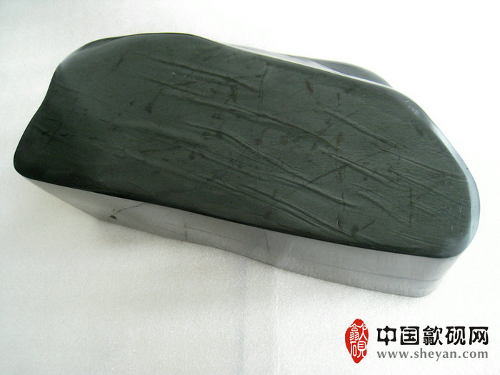【描述】正宗老坑出品,天然砚石,尺寸相当厚实。砚上眉纹,清晰成对,难能可贵。大小共计16条眉子,收藏价值极高