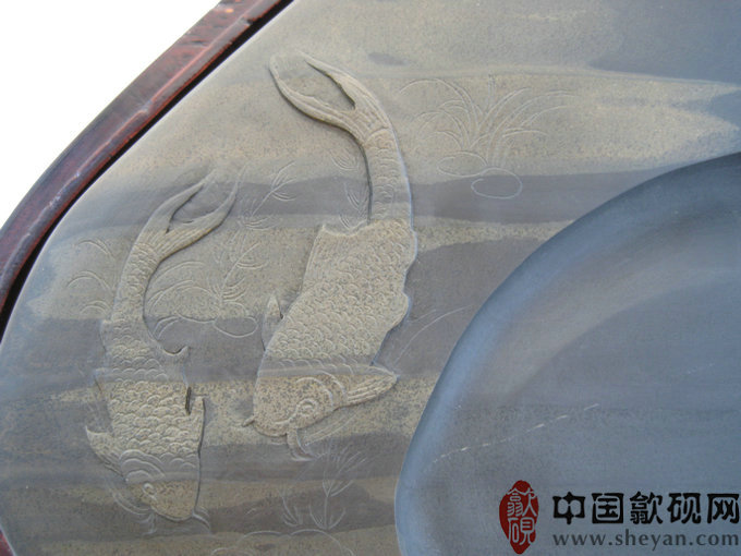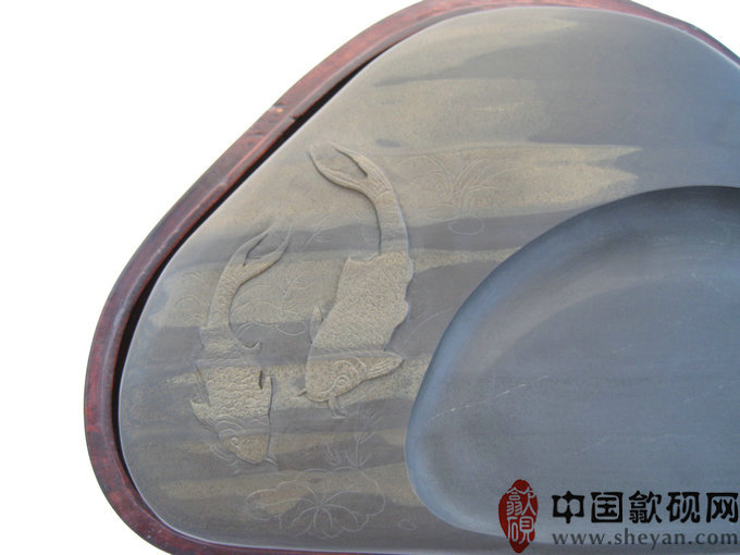 【名称】金晕双鱼嬉水砚