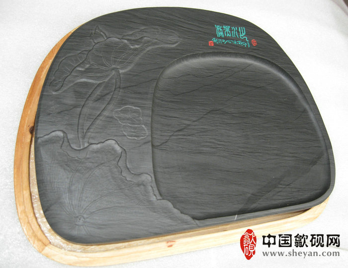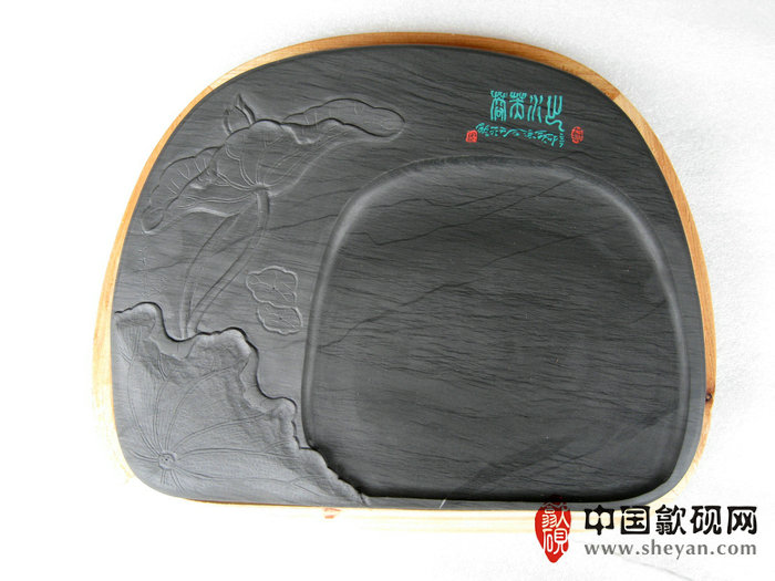 【名称】水波纹出水芙蓉砚 【尺寸】长25厘米,宽20厘米,高2.5厘米 【石品】水波纹 【描述】漂亮的水波纹理,出水芙蓉,灵动的荷叶 【包装】精装木盒 【联系】QQ:550559188 【手机】1860 8866 188