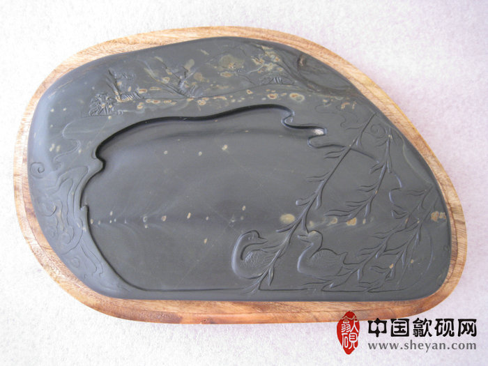 【描述】石质纯净,远山近水,无不细致。点点金雨落入水中,双鹅在碧波荡漾的水中嬉戏,静若如画。收藏实用把玩之佳品!