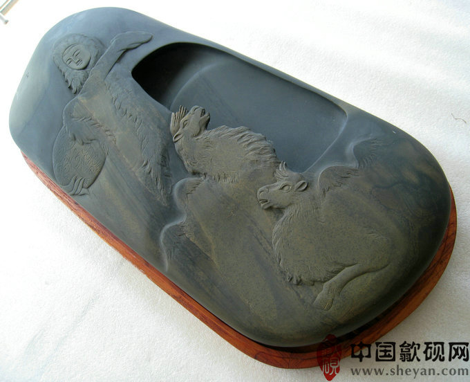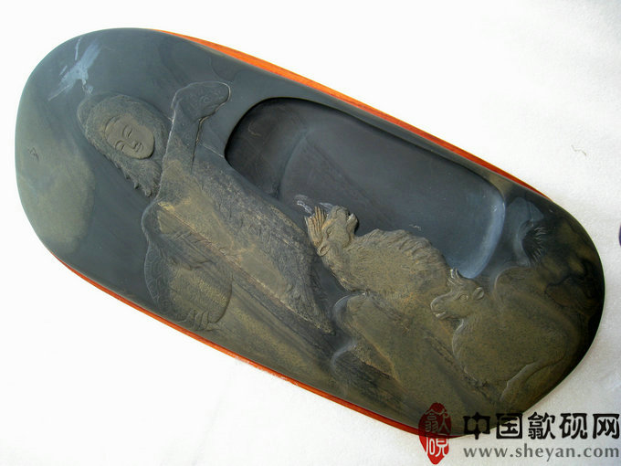 【名称】水坑金晕昭君出塞 【尺寸】长45厘米,宽19厘米,高6.5厘米 【石品】水坑金晕石带纹 【描述】此砚尺寸十分厚实,金晕纹理十分美妙,塞外古道,大漠绵延,昭君抱着琵琶乘着骆驼,带着美好的期盼出使塞外。整体意境悠远。收藏实用送礼之佳品! 【包装】精装香椿木盒 【联系】QQ:550559188 【手机】1860 8866 188