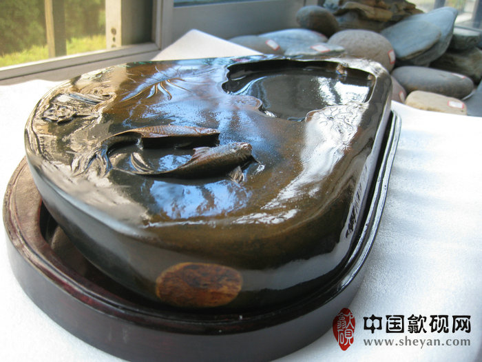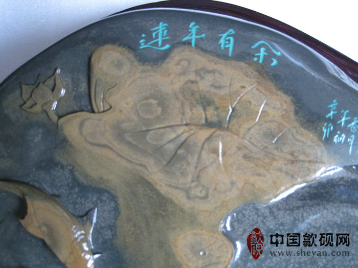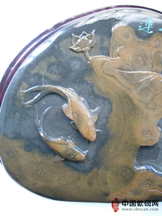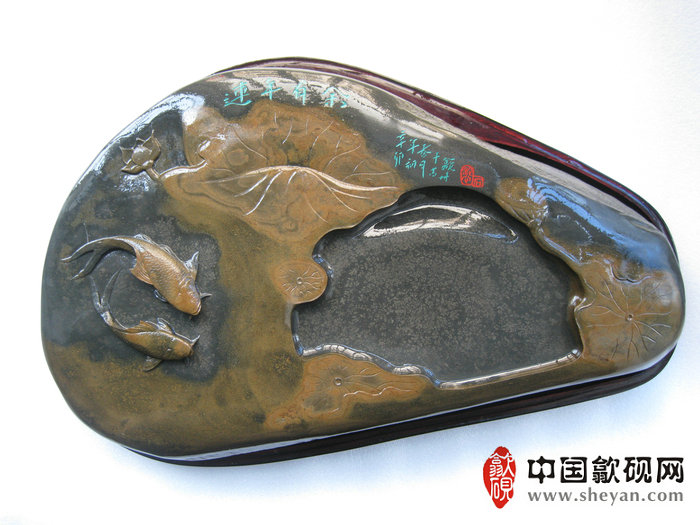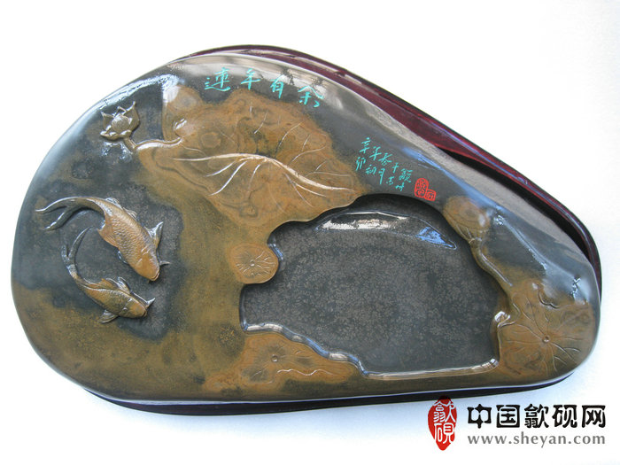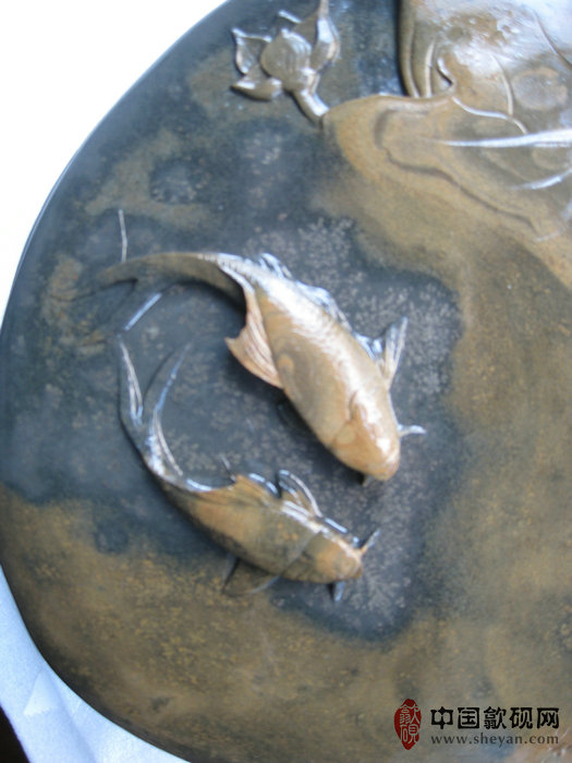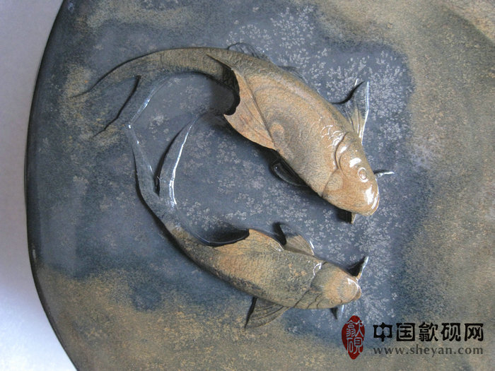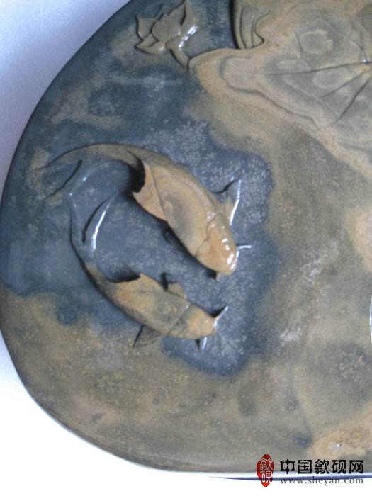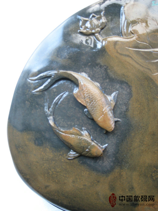 【名称】水坑金晕银花连年有鱼砚