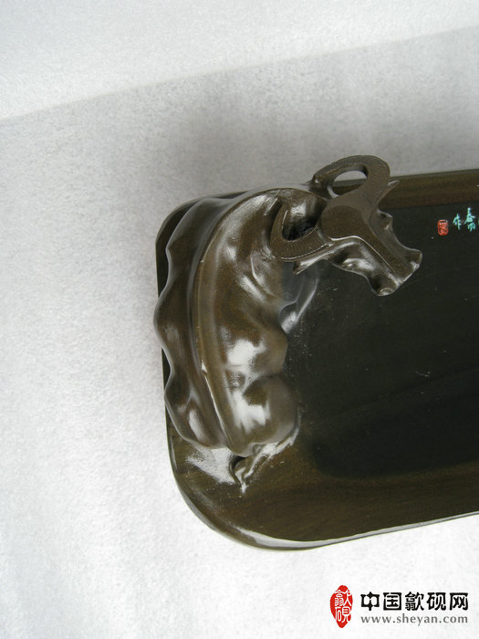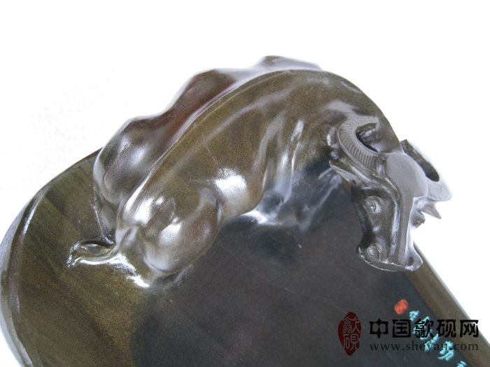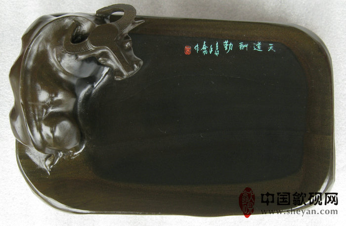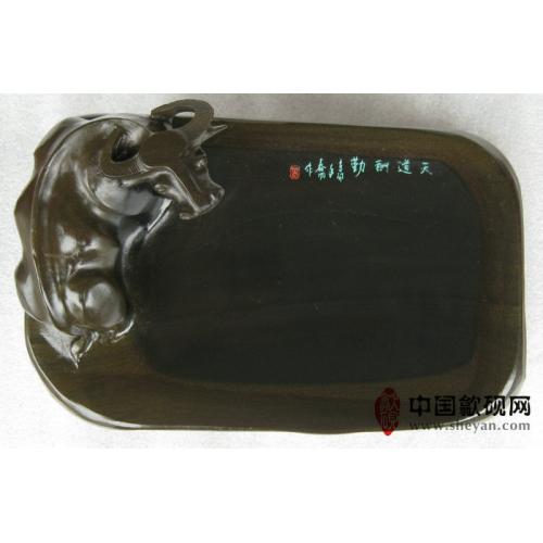 【名称】水坑金晕石天道酬勤金牛砚