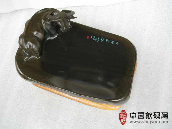 【名称】水坑金晕石天道酬勤金牛砚 【尺寸】长24厘米,宽15厘米,高11厘米 【石品】水坑金晕石 【描述】水坑金晕石,雕刻精细,牛丰满,生动,牛气十足。家中一牛不得不牛,又以“天道酬勤”为座右铭以自勉,收藏送礼实用之精品! 【包装】精装木托 【联系】QQ:550559188 【手机】1860 8866 188