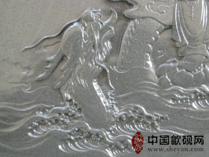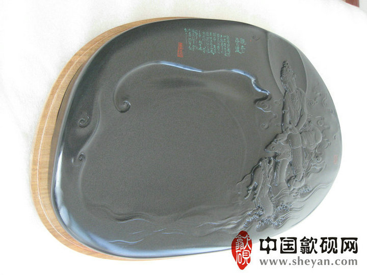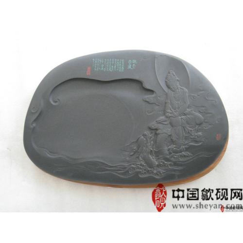 【描述】正宗老坑出品,尺寸非常厚实,砚上鱼子分布均匀,砚石毫无任何瑕疵,扣之金声,呵气成珠,下墨如飞,发墨如油,也是大师雕刻工艺,人物细致,体态端庄祥和,坐骑神龙雕刻也是相当漂亮,薄意雕刻之超高境界!传世之精品!