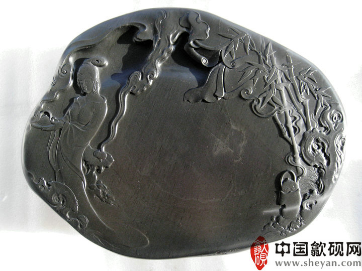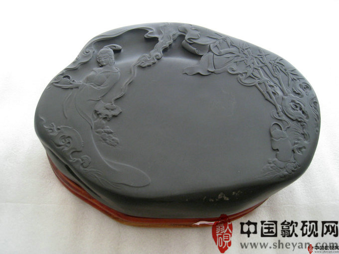 【名称】妙玉奉茶图 【尺寸】长36厘米,宽28厘米,厚6.5厘米 【石品】老坑乌钉罗纹 【描述】正宗老坑出品,尺寸非常厚实,砚上罗纹分布均匀,呈乌钉状,又如落英缤纷,凭添诗意,好一幅妙玉奉茶图。砚石无任何瑕疵,呵气成珠,下墨如飞,发墨如油,大师雕刻工艺,人物细致,传世之精品! 【包装】精装木托