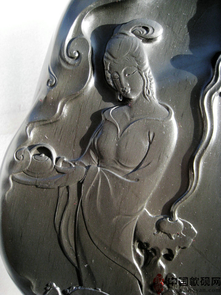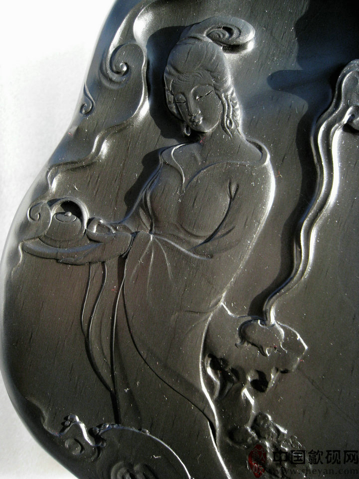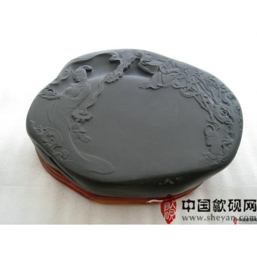 【描述】正宗老坑出品,尺寸非常厚实,砚上罗纹分布均匀,呈乌钉状,又如落英缤纷,凭添诗意,好一幅妙玉奉茶图。砚石无任何瑕疵,呵气成珠,下墨如飞,发墨如油,大师雕刻工艺,人物细致,传世之精品!