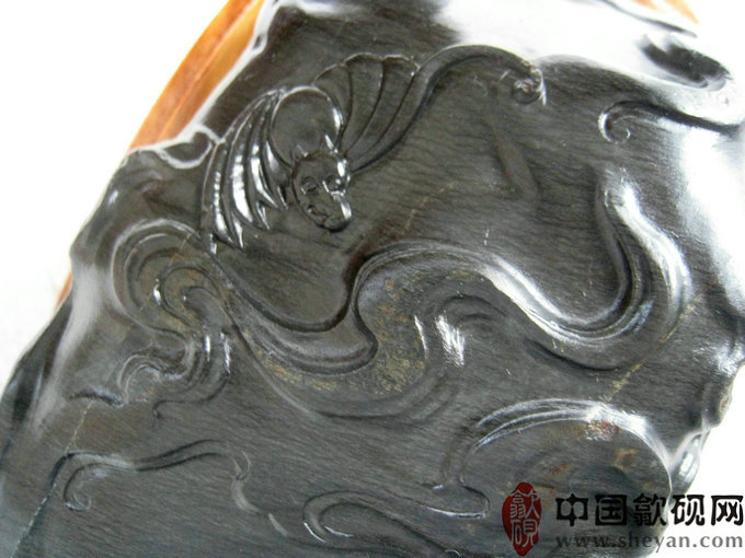 【名称】祥福在天 【尺寸】长29厘米,宽8厘米,厚4厘米 【石品】老坑眉纹 【描述】 【包装】精装香樟木盒
