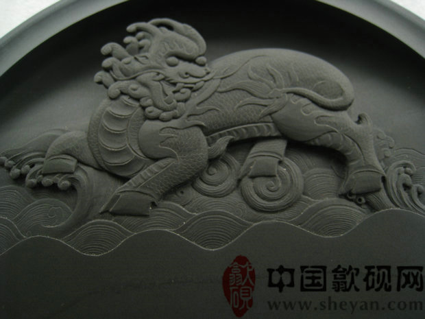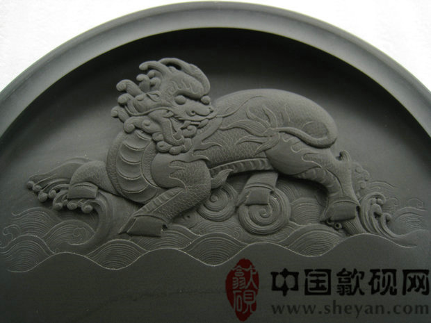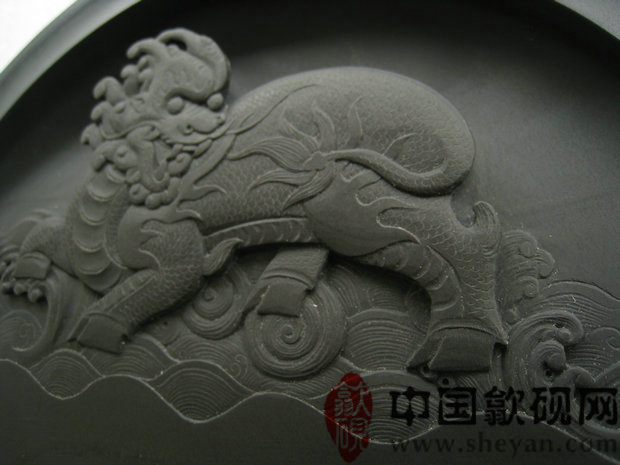 【描述】纹理美妙,石质莹润,造型古朴,形状工整,雕工精细,下发墨好,雕刻神兽麒麟,寓意极佳,收藏实用俱佳
