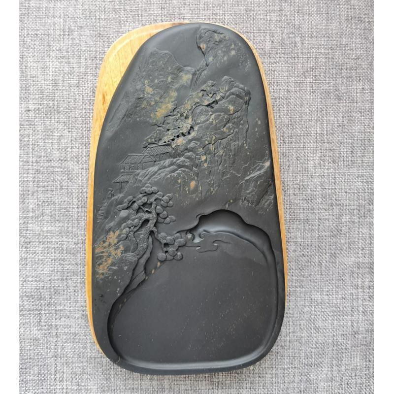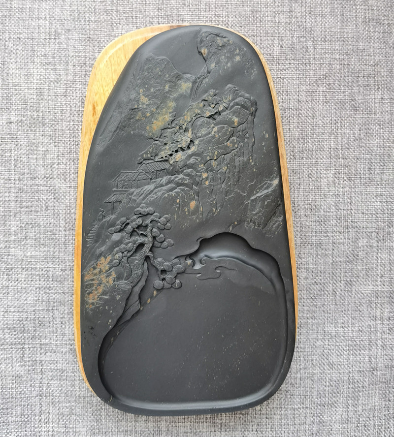 【描述】纹理美妙,造型古朴,形状工整,做工细致,雕刻山水意境极佳,下发墨好,收藏实用俱佳