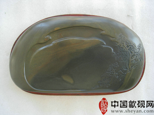 【描述】漂亮的金晕纹理,精美的雕刻,松林幽居,意境绝伦,收藏实用之佳品!下发墨好送礼实用俱佳!