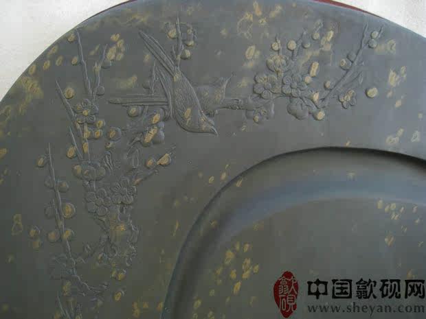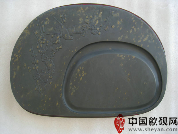 【描述】此砚纹理十分漂亮,凤眼金晕犹如天成,雕刻亦十分精美,意境极佳。两只喜鹊立于梅花枝头,喜上眉梢之意,意寓极佳。下发墨好,尺寸大收藏实用送礼俱佳!