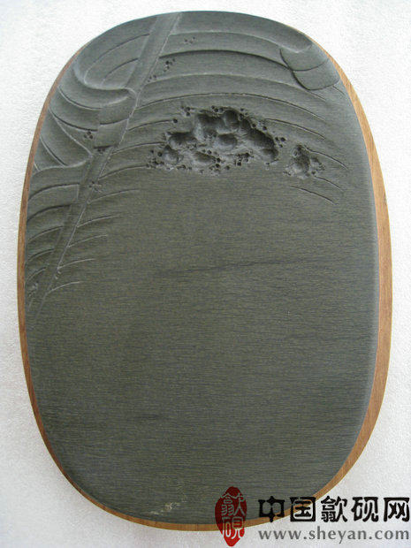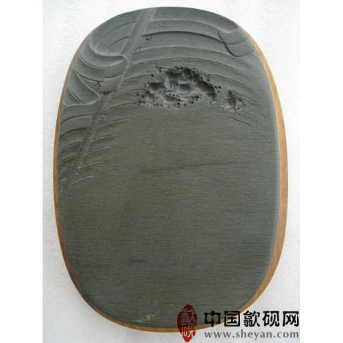 【名称】老坑黄皮犀牛罗纹蕉叶砚