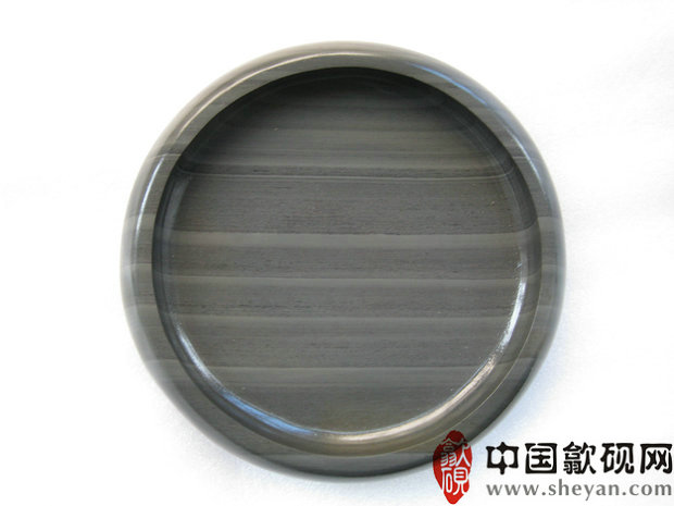 【名称】歙青玉带石圆砚 【尺寸】直径16厘米高3.3厘米 【石品】歙青玉带石 【描述】纹理漂亮下发墨好,实用之佳品 【包装】无