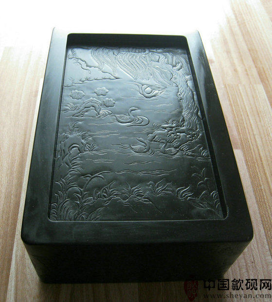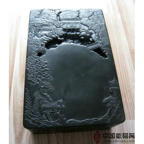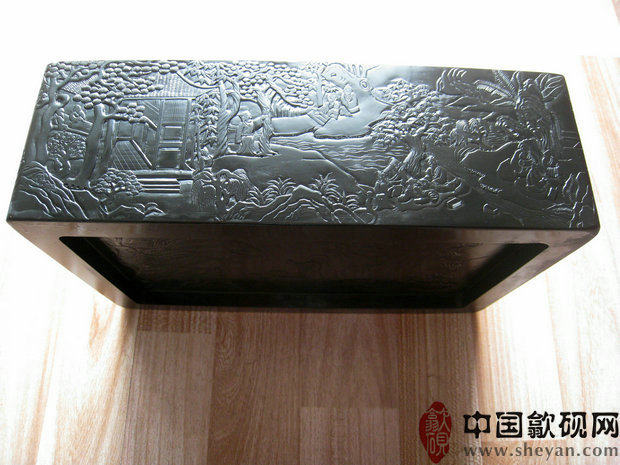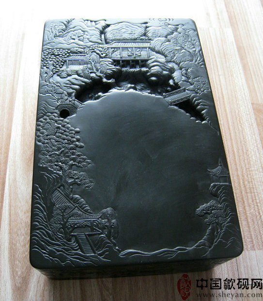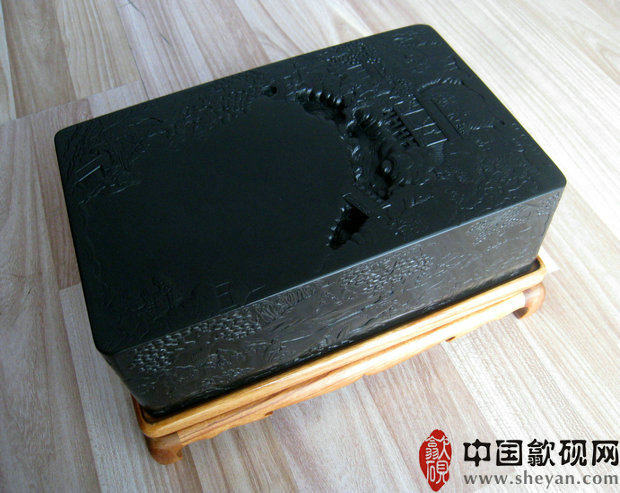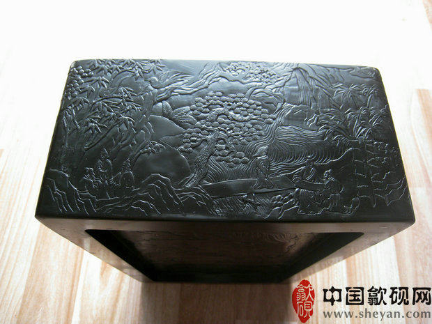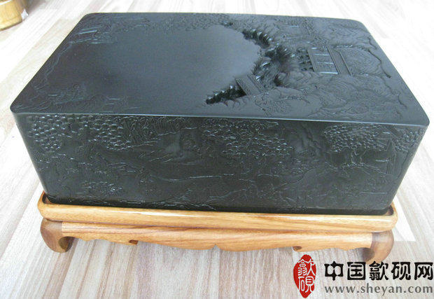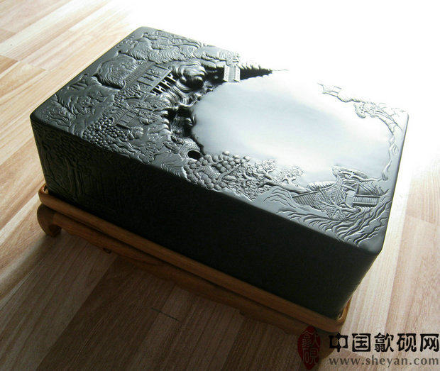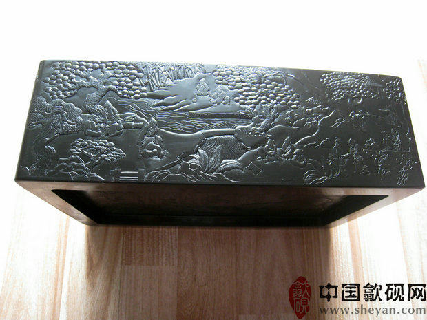 【描述】老坑黑龙尾,石质细腻纯美,六面雕刻,工艺精湛。兰亭自古乃歙砚雕刻的最高意境,尤为考究雕工技巧。砚上所刻众人会聚于兰亭,赋诗饮酒,作流觞曲水之举,其意境清丽淡雅,情调欢快畅达,此乃收藏、传世之绝品佳砚!