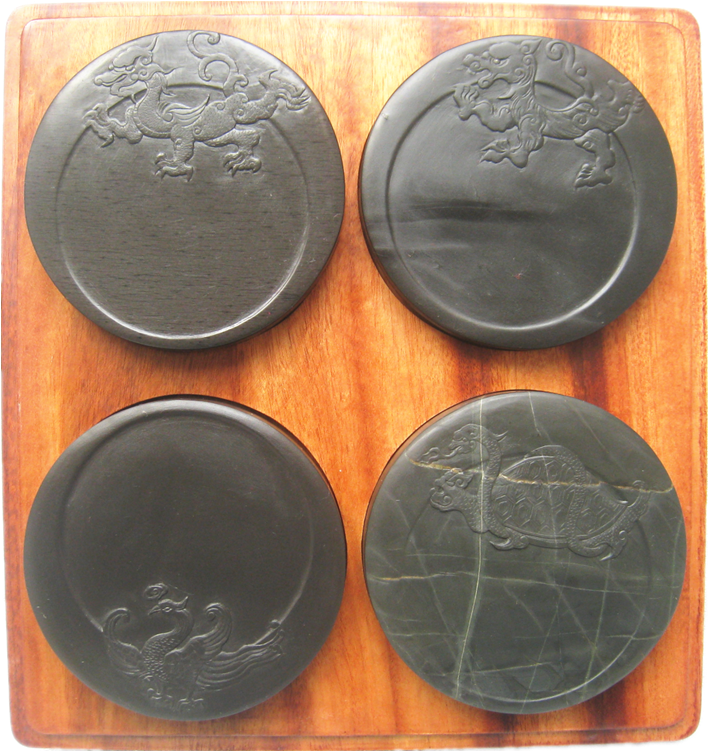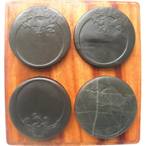 【名称】四大神兽套件 【尺寸】23cm*22cm*4.5cm(盒子) 9.5cm*1.3cm(单个砚台) 【石品】青龙乌钉罗纹;白虎眉纹;朱雀黑龙尾;玄武龟甲纹 【描述】老坑四大经典纹理,传统文化典藏之作,精品传承。 【包装】精装香樟木盒加手提锦盒