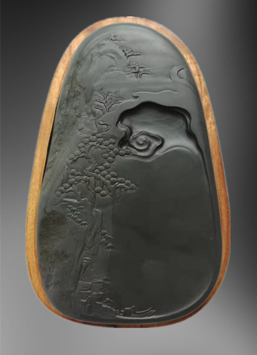 【描述】石质莹润,雕刻细致,行舟于山水之间怡然自得,舒心惬意!