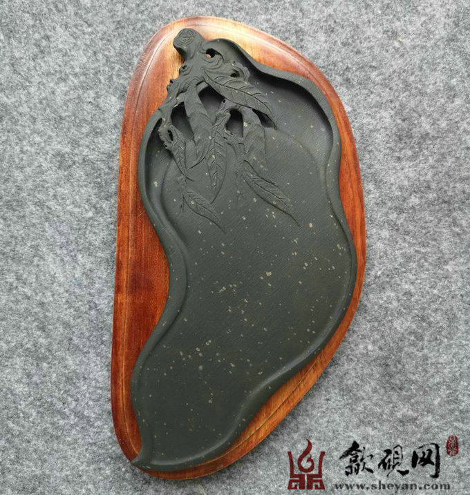 【名称】一叶知秋 【尺寸】长18.8厘米,宽9厘米,厚0.8厘米 【石品】老坑金星水浪 【描述】纹理美妙,造型独特,雕刻精细,下发墨佳,实用收藏之佳品 【包装】精装香樟木盒