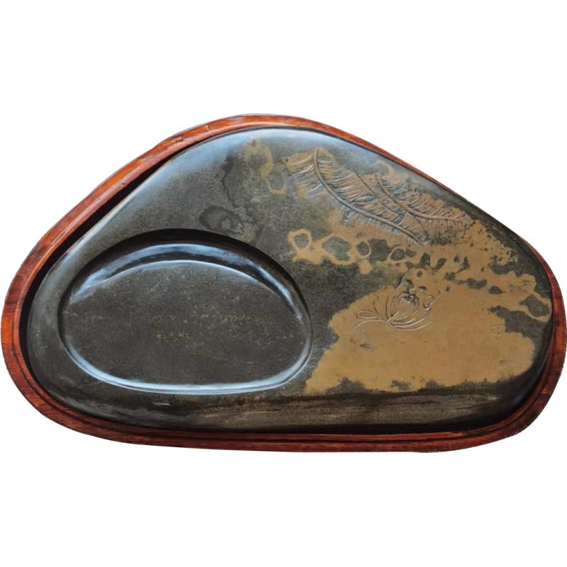 【名称】悟道 【尺寸】27cm*15cm*3.5cm 【石品】鱼子金晕 【描述】天然的纹理,加之精美的雕刻,轻轻几笔意境尽显。收藏实用之精品 【包装】木盒