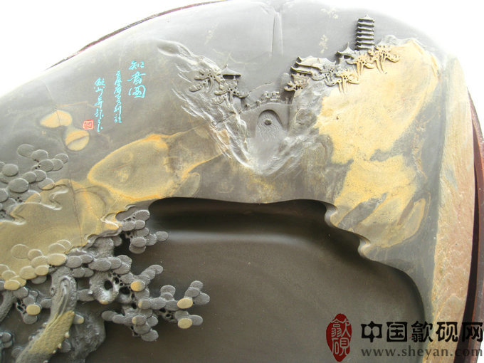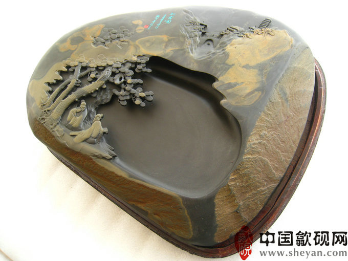 【名称】水坑金晕知音图 【尺寸】长39厘米宽31厘米高10厘米 【石品】水坑金晕石 【描述】砚石浑厚大气,金晕独特而不失韵味,秋山林间,溪流潺潺,庙宇巍峨,二人松下抚琴论道,“高山流水觅知音”正得应景。意境绝佳,收藏送礼之佳砚 【包装】精装木盒 【联系】QQ:550559188 【手机】1860 8866 188