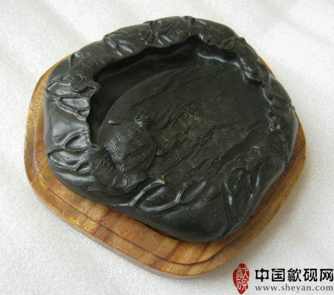 【名称】龟雁观海图 【尺寸】长15.5厘米,宽14厘米,厚3厘米 【石品】粗眉纹,雁湖眉子,海浪眉纹 【描述】眉纹之感实强,雕刻精美,总体为荷叶状,一龟探头,而眉纹似雁群飞,故而似神龟出海观雁,背面为海浪眉纹!石质好,收藏送礼之佳品! 【包装】精装木盒 【联系】QQ:550559188 809089188(请注明“砚台”,不然不可加为好友) 手机:1860 8866 188 【网站】www.dingque.com