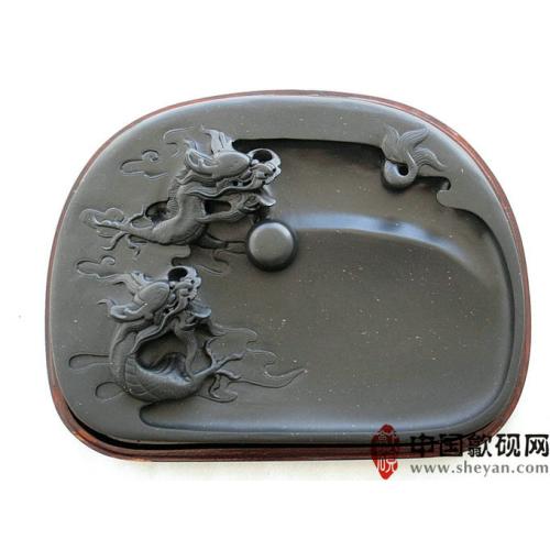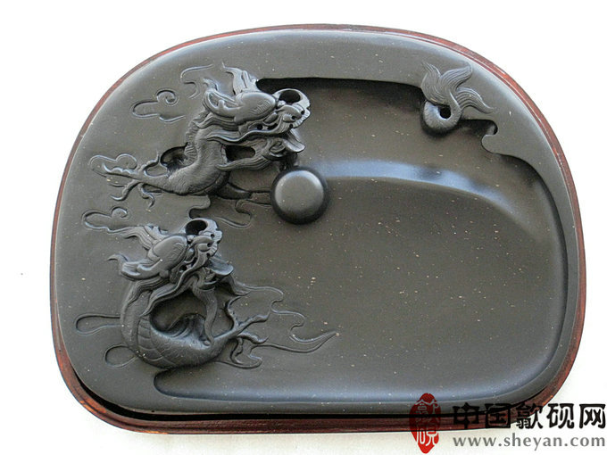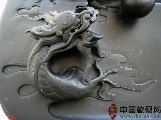 【描述】该砚品相十分漂亮,砚石十分厚实,顿观砚身,尽无瑕疵,近乎完美,全身遍布银星,双龙张牙踏步 ,腾云驾雾,抢嬉明珠,气势磅礴,大有气吞山河之势!寓意十分美妙!实乃收藏观赏之上品!