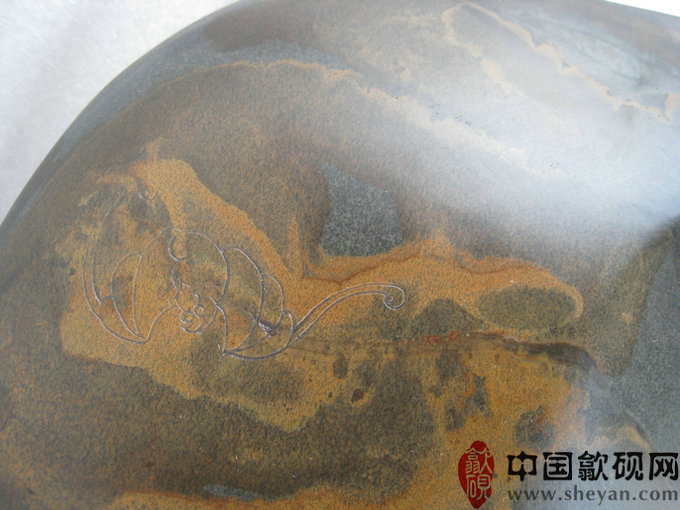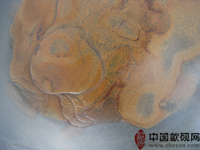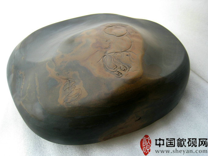 【描述】此砚纹理漂亮,尺寸厚实,取天然纹理稍做雕刻,福寿之意顿显砚身,寓意极佳,收藏实用送礼之佳品!
