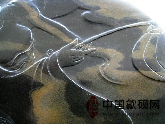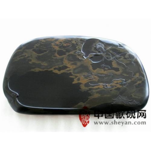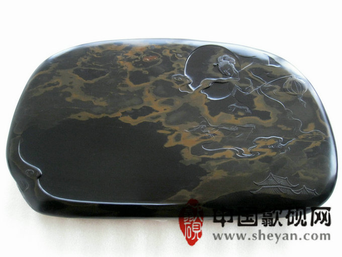【描述】正宗水坑出品,尺寸非常厚实,砚上金雾,酷似仙境,加之大师级的雕刻工艺,仙子舞月之意境,跃然石上,非常漂亮,薄意雕刻之超高境界!传世之精品!